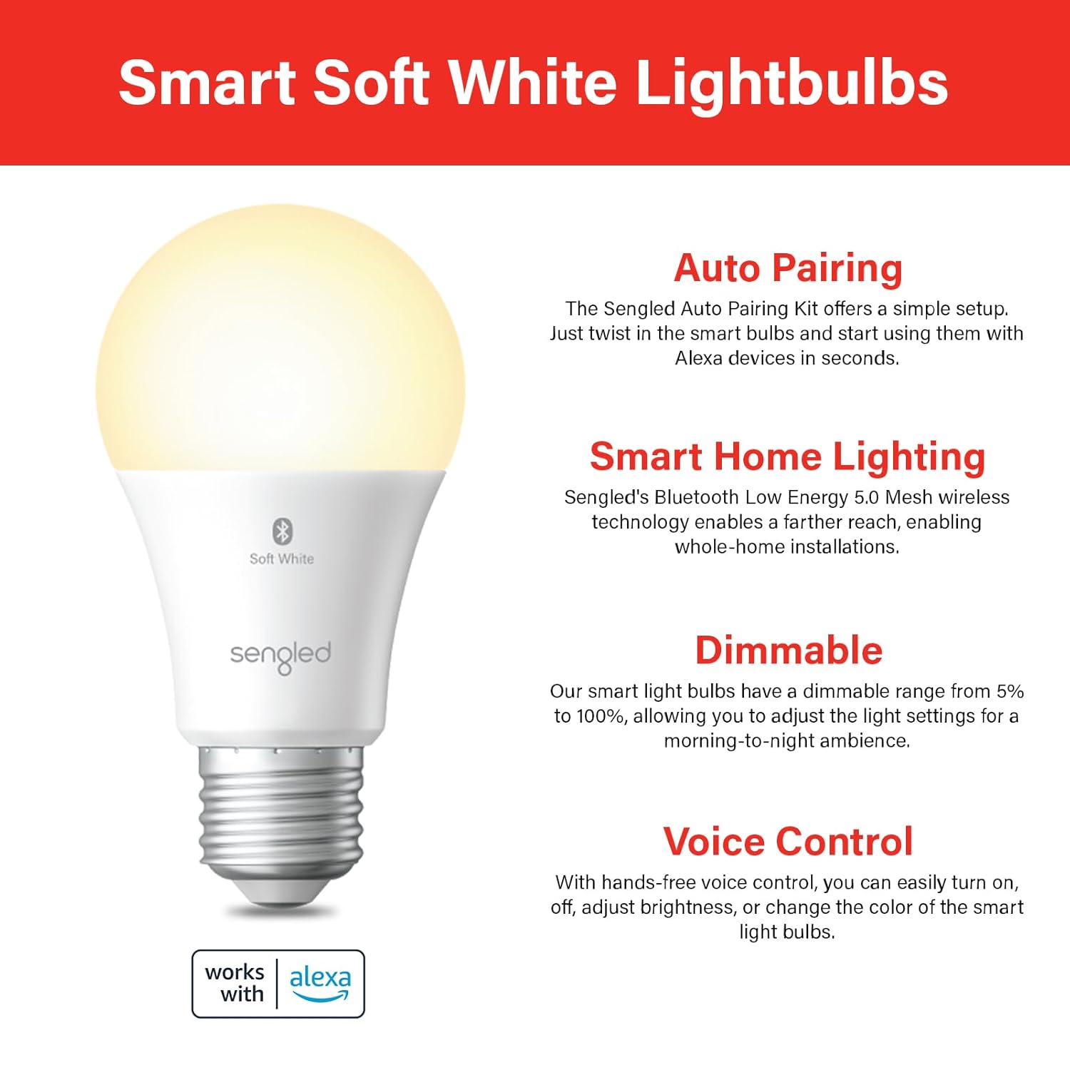 Looking for a smart lighting solution that seamlessly integrates with your Amazon Alexa ecosystem? The Sengled Smart Bluetooth Mesh LED Bulb is the perfect choice. This dimmable, 800-lumen bulb delivers a beautiful soft white light and is engineered for an effortless, hub-free setup with your Alexa-enabled devices. It’s the ideal way to add voice-controlled lighting to your home without the need for complex installations or additional hardware.